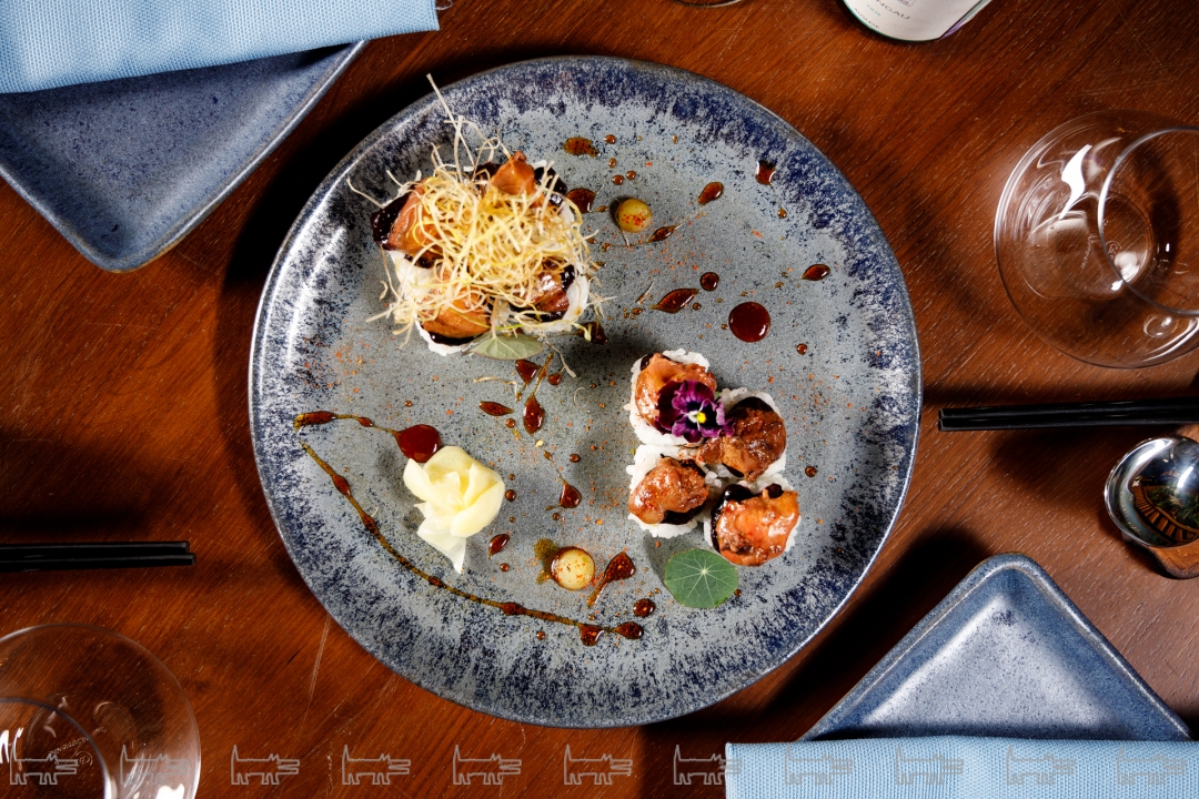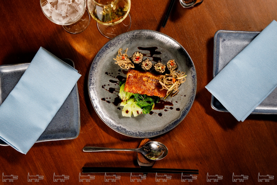 Кухня паназиатская. Лори отвечает за классику, а Александр и Ярослав экспериментируют и подают, например, рамен с уткой, кисло-сладкий салат с креветками, помело, кокосом и цитрусовым соусом и лосось с чипсами из шпината и чеснока, а к палтусу добавляют роллы из лапши собы. Последние составляют важный отдельный раздел в меню. Обязательно пробуйте с тунцом и лососем, усыпанные воздушным рисом, зеленью и цветами, – их зачем-то назвали «Ни Фэн Шуй», возможно, потому, что вместо соевого соуса к ним полагается кисло-сладкий джем с добавлением чили. Также в наименованиях встречается «Мечта гейши» – это ролл с тунцом, фуа-гра и голубикой. Из горячего советуем палтуса – его подают с роллами из лапши собы. На десерт предлагают теплый ананас, обжаренный на гриле в пяти специях и черном тростниковом сахаре мусковада, к нему – шарик ванильного мороженного на подушке из миндально-кунжутного кранча. Или пробуйте крем-брюле с лемонграссом с карамельной корочкой – его украшают цветами и сезонными ягодами.