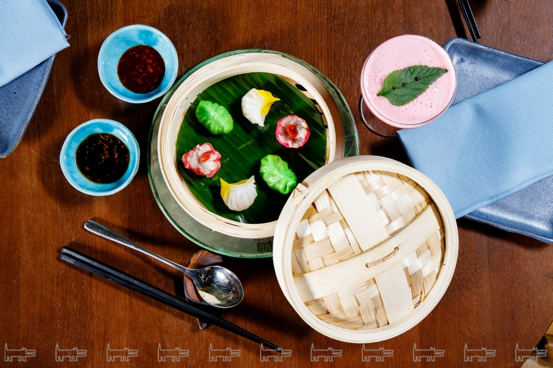 Первая зона внутри Mandarin Square – азиатский рынок, где прямо перед гостями нарезают татаки, укладывают суши и заворачивают роллы. Следующее пространство – коктейльный бар в колониальном стиле, такой же симметричный, как все пространство в фильме «Отель "Гранд Будапешт"», и похожий на лобби роскошного отеля. Здесь можно не спеша выпить бурбон, беседуя с бартендером, и – это обязательно – попробовать фирменный Matcha Grass на основе джина с тонкими, освежающими нотами лемонграсса, добавлением белка и порошка матча.
