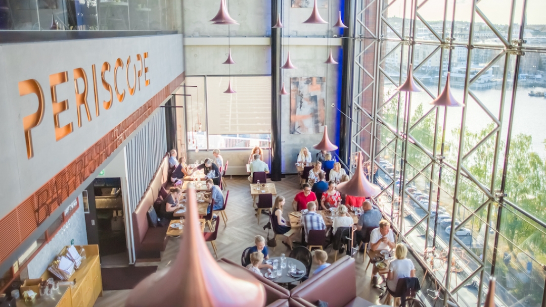 Ресторан Periscope, открытый одним из известнейших шеф-поваров Финляндии и владельцем Кулинарного института в Хельсинки Арто Растасом, сделан в форме оптического прибора. И действует по тому же принципу: с двухэтажного заведения, включающего в себя просторный зал, лаунж-бар и террасу, видно весь индустриальный и озелененный Тампере. Взгляд от фантастического (мы не преувеличиваем!) городского пейзажа могут отвести лишь «инстаграммные» блюда с миксом тыквы, сыра и меда или пастернака, макадамии и эстрагона, которые разделяются между всеми гостями. Periscope поддерживает популярную в Северных странах концепцию social eating, которая позволяет посетителям пробовать и обсуждать меню, приправленное австрийским розе, немецким блан де нуар и словацким рислингом.