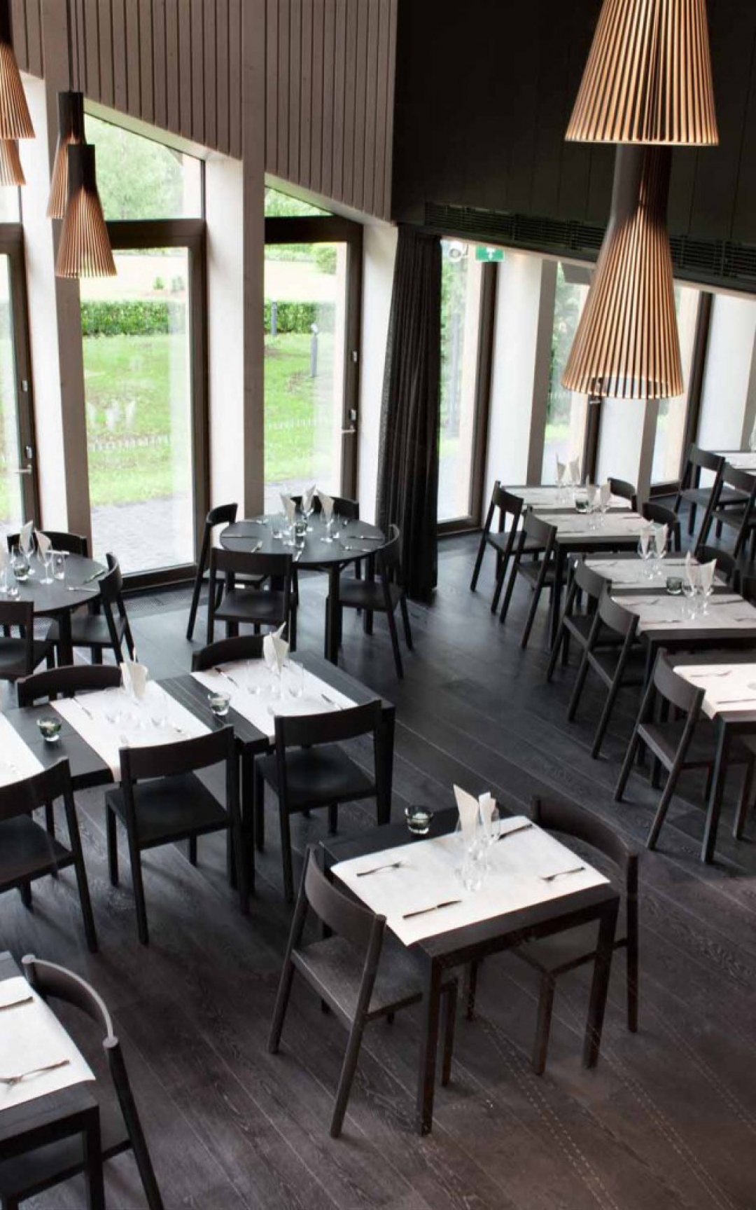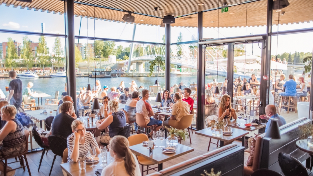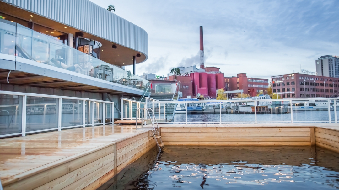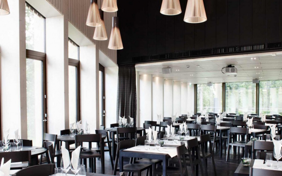 Ресторан Kuuma — еще одно заведение в концепции social eating, но в отличие от других гастромест Центральной Финляндии общение и еду здесь совмещают с сауной. Одно из просторных помещений двухэтажной Kuuma занимают традиционная парная и парная на дровах, которые отделены от лаунж-зоны и имеют выход к бассейну на воде. Деревянные структуры для ресторана-сауны придумало агентство Honka во главе с Янне Канте, за интерьер отвечала Яна Экман из Visionary Design, а кухню разрабатывали Ээро Мякеля и Сара Ле Фонтейн, соединившие вкусы северных специалитетов и нетрадиционных для Финляндии ингредиентов. Копченая морковь здесь приправлена соусом барбекю, а нежнейшие телячьи щечки подаются в цветочном обрамлении, при этом к каждому из блюд предлагается определенное вино — ценой от 29 до 80 евро за бутылку.