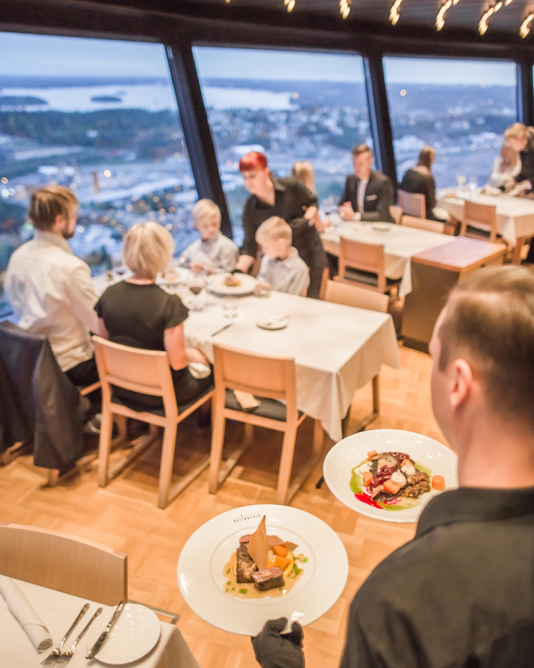 Ужин на самой высокой башне Скандинавии (120 метров!), которая ко всему прочему вращается вокруг своей оси? Да, пожалуйста! Встречайте, ресторан Näsinneula, в котором мечтают получить предложение руки и сердца практически все девушки Финляндии (и мы их понимаем!). Построенный в 1971 году как смотровая площадка, Näsinneula превращался и в роллердром с дискотекой, и в туристическое кафе, и в заведение с танцовщицами варьете, лишь в 1997 году став гастроместом с локальной кухней. Причем рос и развивался ресторан вместе со своим шеф-поваром Эвой Кокко: она проработала на башне Näsinneula всю свою жизнь, начав карьеру с позиции продавца хот-догов, а теперь отбирает лучшую спаржу, сморчки, клубнику, раков и икру ряпушки из озер Näsijärvi, «складывая» их в блюда-арт-объекты. За дегустацией в сопровождении высококлассных вин, которые подаются в австрийском стекле фирмы Riedel, не замечаешь головокружительного путешествия с видом на весь Тампере — 1 круг Näsinneula совершает за 45 минут.