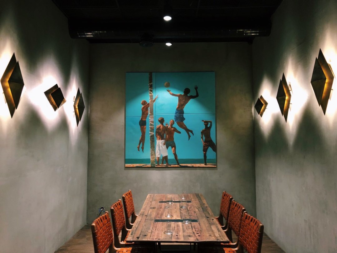 Интерьеры соответствуют локации: высокие потолки, бетон, металл, дерево, кожа – но не такие типичные, как большинство проектов, отстроенных в 2018 году одним и тем же архитектурным бюро. Дизайн разрабатывала Анастасия Хальчицкая (Charlie, The Repa, Vinovniki, Kroo cafe). На стенах – работы петербургского художника Сергея Рожнова, тоже чуждые стереотипам о Петербурге. Но, возможно, в теплый сезон действительно получится сыграть в пляжный волейбол в перерывах между горячим и десертами: из Bestie можно будет выйти на террасу, а с нее – прямо на набережную, которую обещают оборудовать к лету. Помимо основного зала с открытой кухней и барной зоной, рассчитанного на 77 посадок, в ресторане есть отдельный кабинет для мероприятий и детская комната – их обещают достроить к январским праздникам.