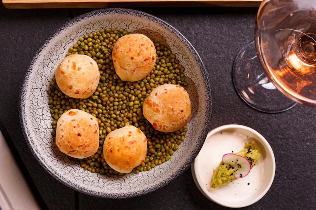 На старт предлагают не только все эти важные для винных вечеров оливки, артишоки и сыры, но и, например, баурсаки – традиционное блюдо казахов, узбеков и других народов, которое готовят на праздники в большом количестве масла. В The Sizzle от жирных традиционных «пончиков» осталось только название, так как в условиях ресторана повторить это невозможно (и не нужно), но этот факт не делает их менее примечательными: хорошая альтернатива хлебу – булочки из нежного теста с добавлением овечьего сыра, которые идеально сочетаются с гуакомоле. Разламываете прямо руками, пока баурсаки горячие, и щедро черпаете закуску из авокадо.