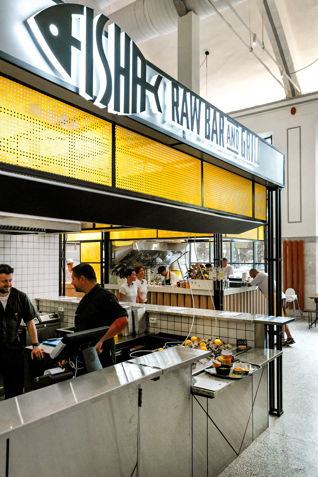 Raw бар напротив итальянцев Pio Nero, и это соседство предвещает быть очень удачным. Fisha – единственный корнер в этой части рынка, кто получит алкогольную лицензию. А что за итальянская кухня без вина? Но ребята и сами не сплоховали: скоро запустят гриль, а пока в тестовом меню только новозеландские устрицы и суп чаудер. Хлеб с маслом за 100 рублей — не основная позиция, а обязательное дополнение к тому или другому.