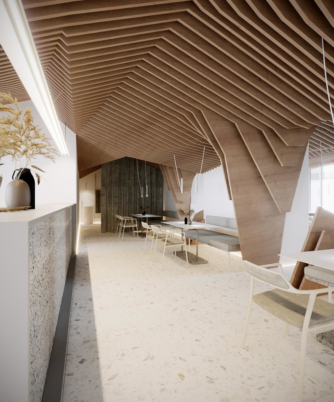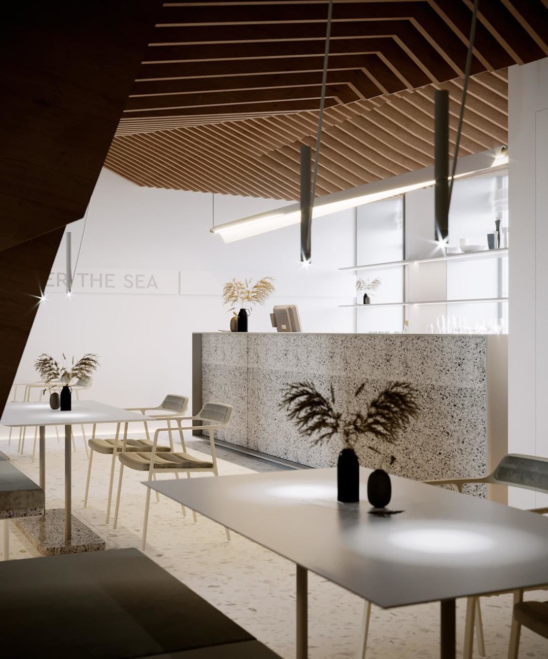 Визуальную концепцию Under the Sea разрабатывали Борис и Анна Львовские из DA architects (Gastroli, Port, Kido). Основные используемые цвета — белый и светло-серый, а ключевой элемент в интерьере — деревянные панели, которые установлены от потолка до пола в форме морской волны. Само заведение разделено на два зала: в первом посетителям предложат столики у больших окон с видом на улицу Восстания, а во втором (более камерном) — места на диванах.