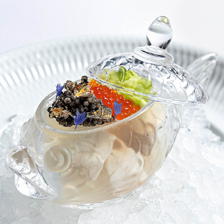Заливное из стерляди с черной икрой и кремом из хрена от Андрея Жданова