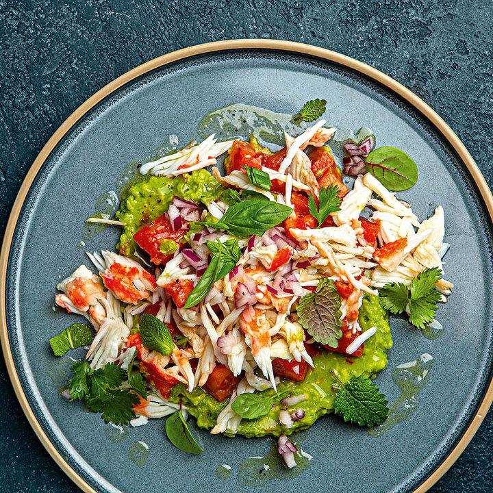 Салат с томатами, крабом и дрессингом цитронет от Сергея Гальцева, бренд-шефа Juan Cantina Espanola, Jam Café и Ателье Tapas&Bar, Санкт-Петербург