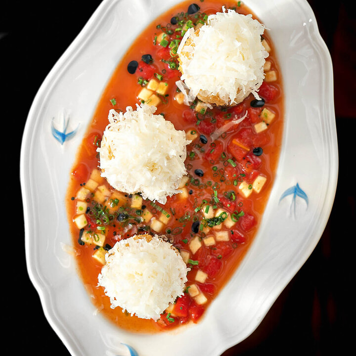 Сушки-бриоши, запеченные с утиным фаршем и пармезаном от Александра Богданова, бренд-шефа отеля «Гельвеция», ресторанов Cafe Claret, Marius, Санкт-Петербург