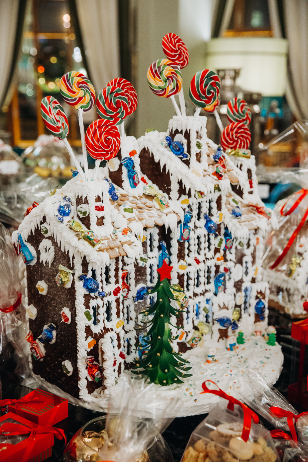 Очень красивые пряничные домики можно купить и в отеле «Астория» (3 900 рублей), кроме того здесь продают и другие сделанные вручную сладости: шоколадные конфеты (от 450 рублей), рождественское печенье, мармелад, три вида традиционного немецкого штолена (1 800 рублей) и классические кексы (600 рублей).