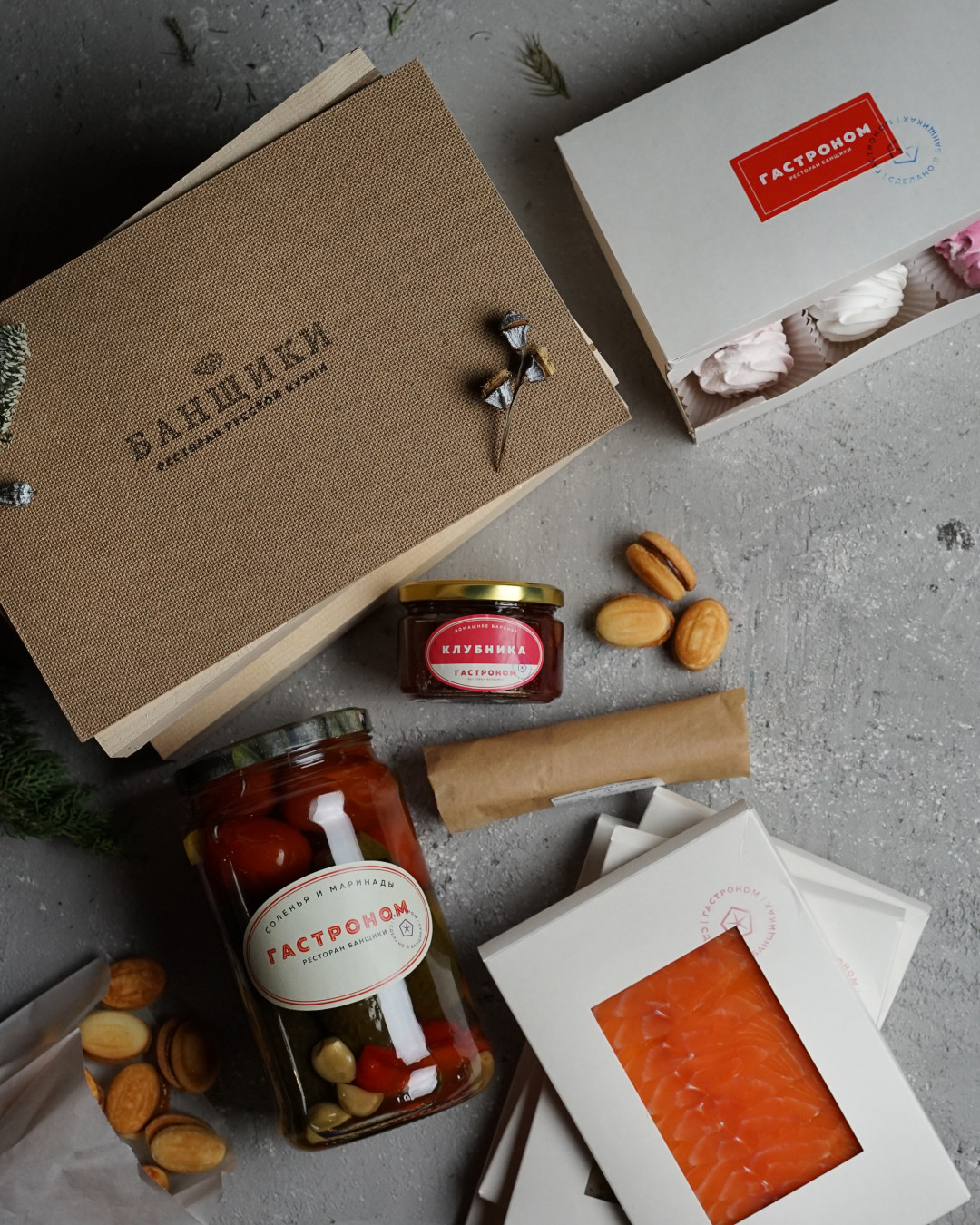 Лучший передвижной рынок всего фермерского «Они пожрать любят» недавно запустил в продажу фирменные наборы с разнообразной снедью в коробках – чем не идеальный подарок на Новый год. Флагманская коробка «для идеального бутерброда», например, включает соуса песто и вяленые томаты, несколько видов душистого масла, паштет и домашний хлеба на закваске. Ближе к праздникам запустят и специальные коробки – сладкие (с печеньем, карамелью, кофе и т. д.) и гедонистические (с вином, сырами и икрой и другими деликатесами).
