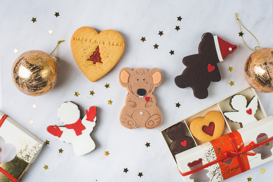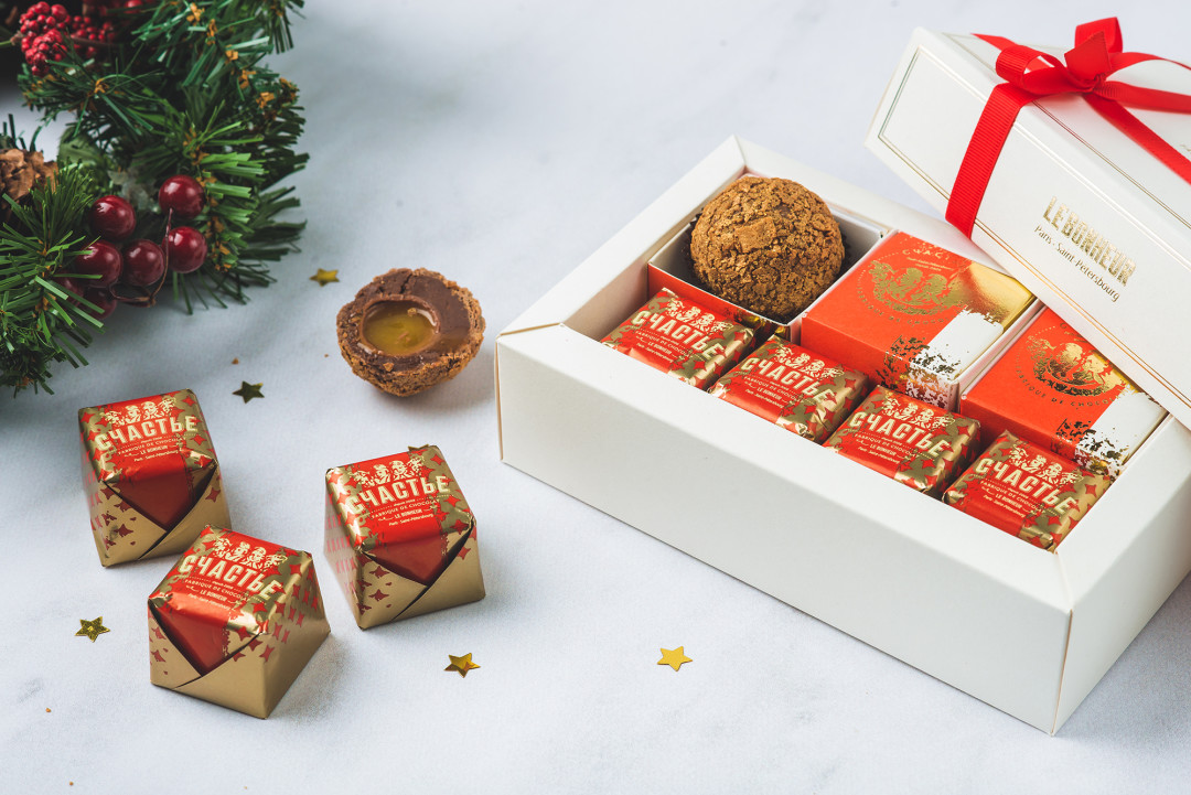Во-первых, во всех ресторанах Арама Мнацаканова продают фантастические домашние конфеты – нежный тягучий ганаш из темного шоколада с ароматом розмарина – почти полноценное пирожное. Подарочка коробочка с 3 конфетами стоит 550 рублей. Кроме того, к новогодним праздникам в ассортимент добавилась специальная сладкая выпечка: в семейном загородном ресторане «Рыба на даче» можно купить набор домашнего печенья (390 рублей) и сладкую елку (650 рублей), в «Рыбе» на Петроградке пекут имбирные пряники-елочки 3D (600 рублей), новогодние пряники (350 рублей) и домашнее миндальное печенье (250 рублей), а вProbka на Добролюбова приготовят домашние имбирные пряники в виде разных фигурок (350 рублей за набор).