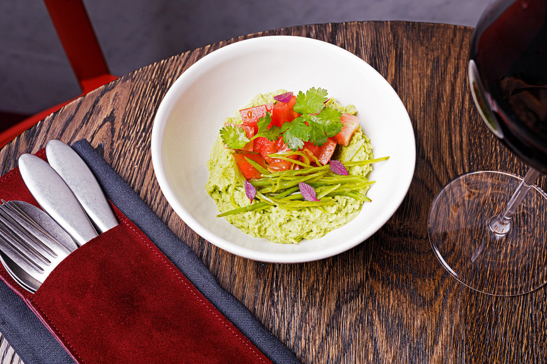 Свой винный бар создатели пиццерии «22 сантиметра» и мясного ресторана Red. Steak & Wine Эльдар Кабиров и Андрей Петухов сразу объявили пространством эксперимента, и теперь следуют обещанию, регулярно устраивая привозы заслуженных шефов из Москвы и регионов. Шеф-повар заведения Константин Опескин тоже не отстает: предлагает севиче из томатов, с физалисом и виноградом, тартар из оленя с маринованным одуванчиком и супер-хит – брауни с авокадо и трюфелем.