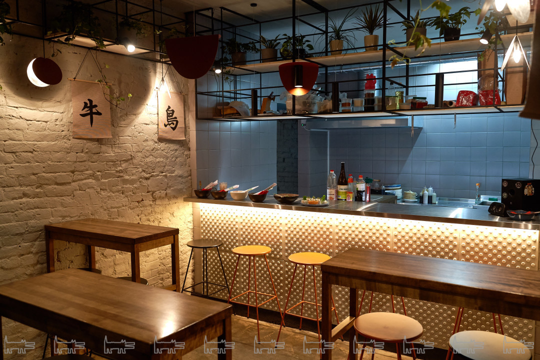 Изакая-бар, где к тренду на небанальную Японию — творчески переосмысленные роллы и рамены — подошли с позиций эстетства. Идеологи Виталий Дмитраш и Александр Гроховский превратили скучный подвал в идеальные декорации фильмов Вонг Карвая.
