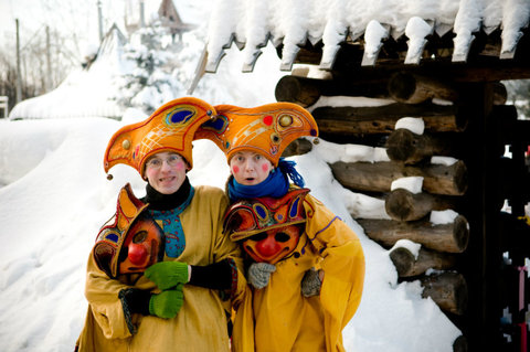 С часу дня в прощеное воскресение (26 февраля) начнется веселье со скоморохами и розыгрышами, конкурсами и хороводами, катанием с высокой деревянной горки и различными угощениями (и не только блинными). Плов, уха, поросенок на вертеле.