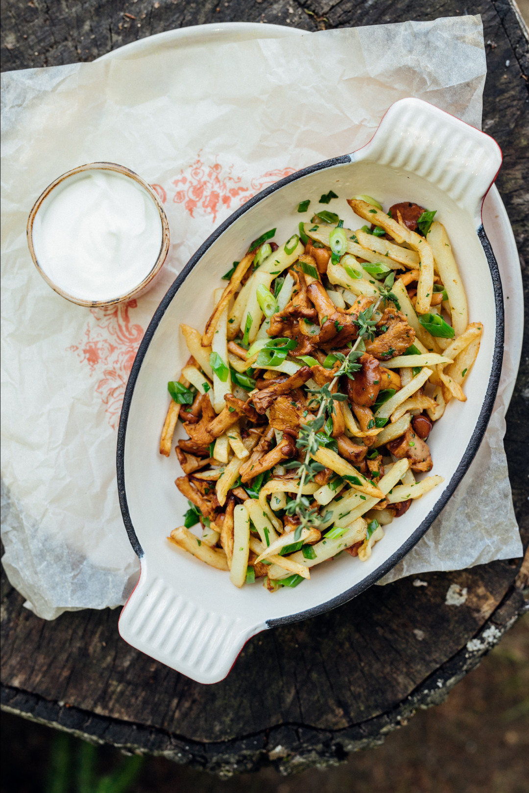 В панорамной пиццерии и в загородном ресторане Арама Мнацаканова с сезонными грибами можно заказать самые популярные блюда: пиццу, пасту — лингвини в Rыба на Даче и спагетти в Rыба, и, главное, там и там готовят классический жареный картофель с лисичками — как из детства.