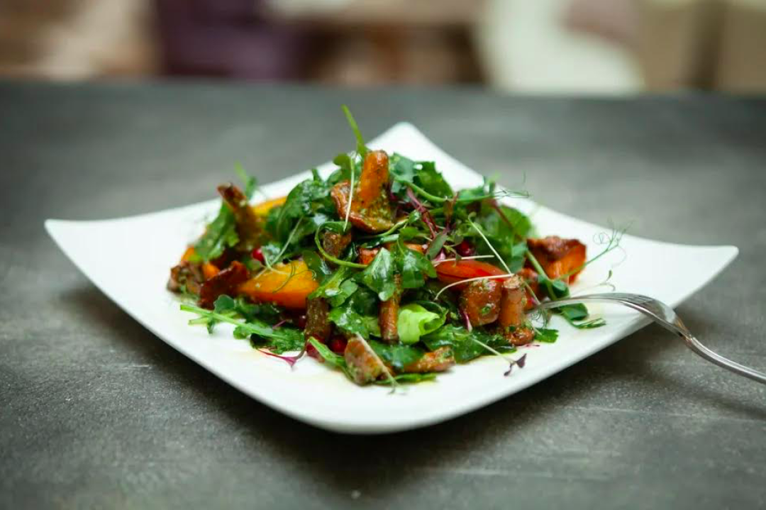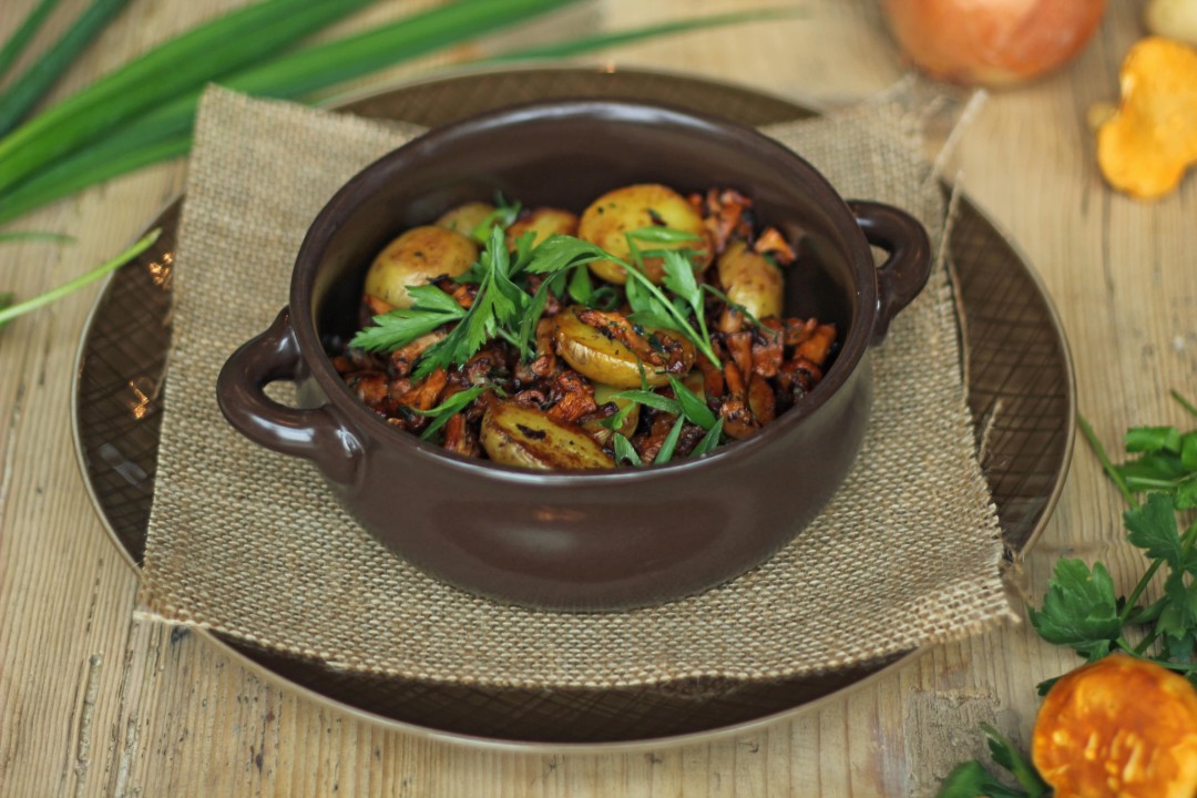 Зеленая гречка и «азиатский» картофель с лисичками в «Географии»