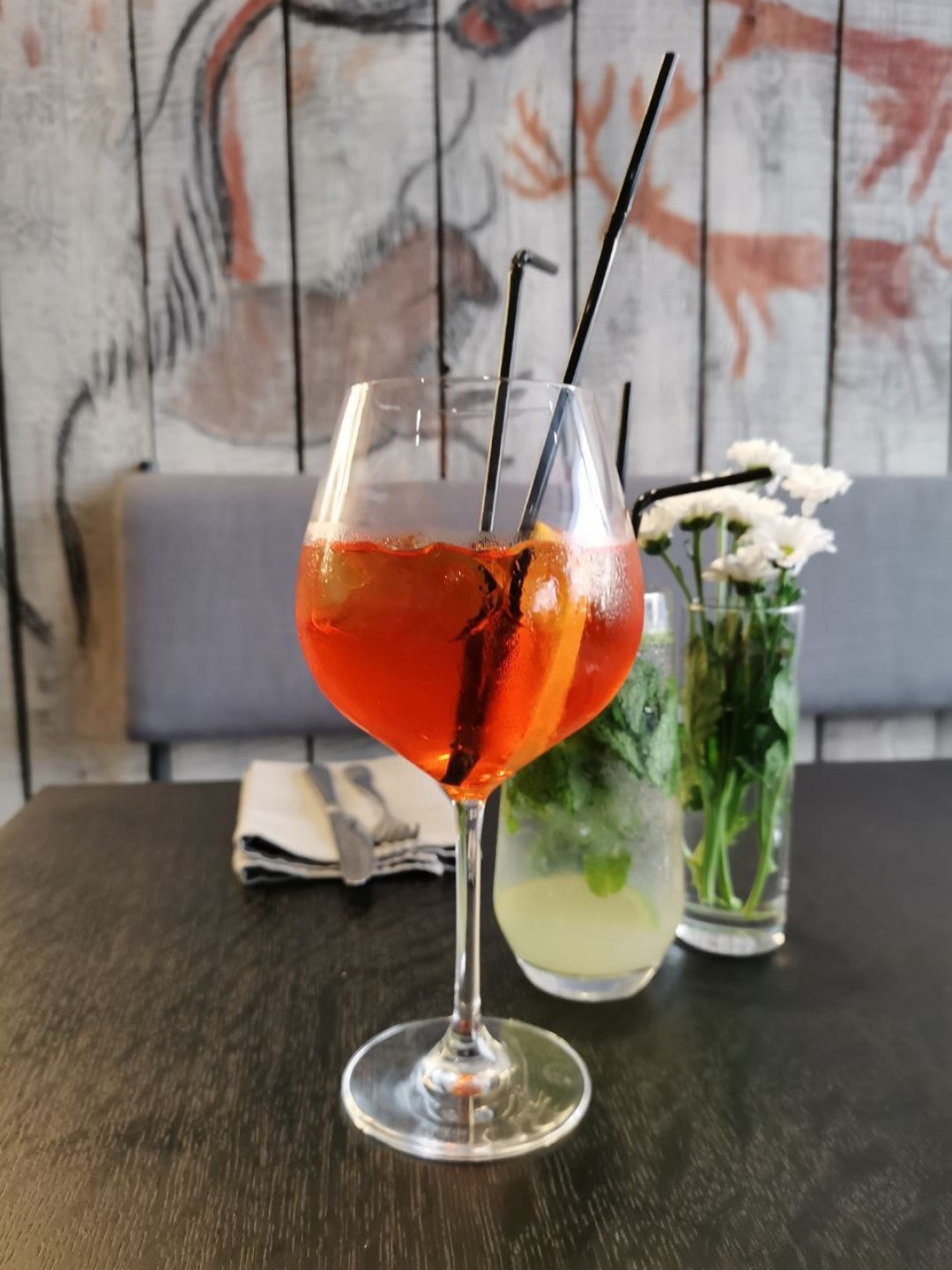 Солнечный апероль в мясном ресторане на улице Ленина доступен даже осенью. В рецептуре б/а вино, сироп из красного апельсин, тоник и содовая — лето будто и не кончалось.