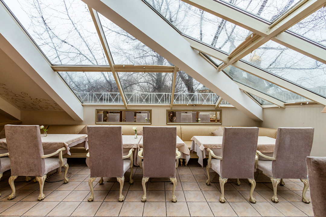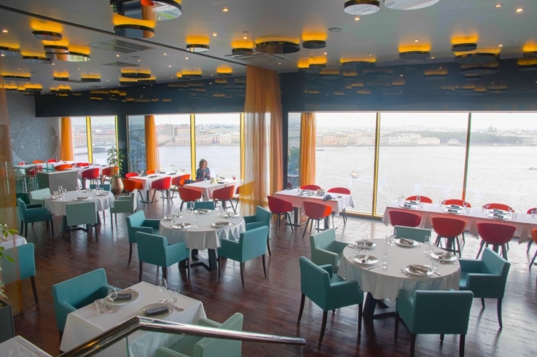 Открыточный и очень эффектный вид на Петербург вид из панорамных окон ресторана, расположенного на крыше отеля «Санкт-Петербург», — акватория Невы, Эрмитаж, крейсер «Аврора» и Спас на Крови с высоты 60 метров. К панораме прилагается добротная подборка вин, 7 залов (есть даже гостиная и всесезонная терраса).