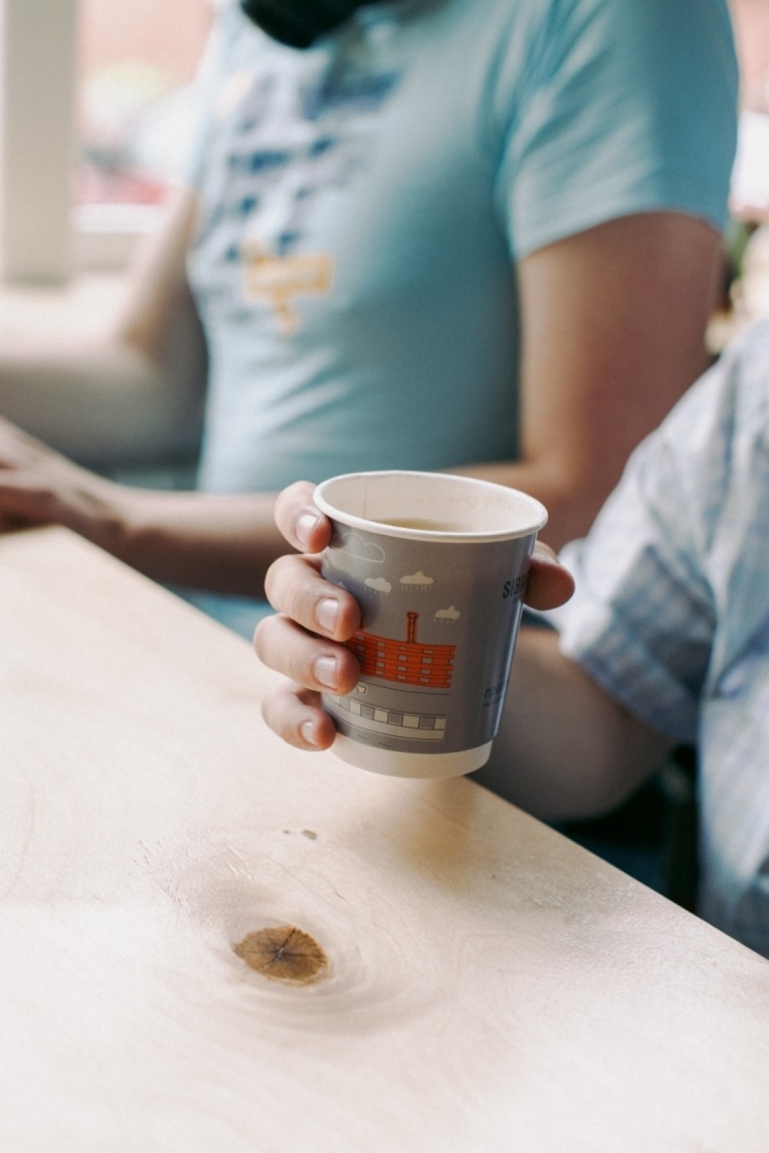 Индустриальный пейзаж набережной Обводного канала на одноразовых стаканах — это кирпичные стены завода «Красный треугольник», которые расположены напротив производства обжарщика. Силуэт нарисовали подопечные мастерской «Простые вещи» Никита и Слава. Тираж стаканчиков сделали лимитированным, а 1 рубль с продажи чашки кофе пойдет на помощь подопечным мастерской.