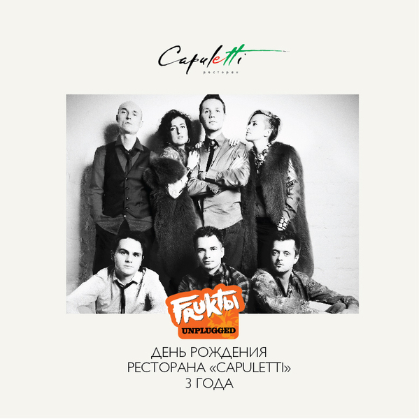 23 ноября итальянский ресторан Capuletti, принадлежащий холдингу Ginza Project, отметит третий день рождения. В рамках вечеринки в траттории состоится концерт московской группы «Фрукты», главных помощников телеведущего Ивана Урганта в его авторском вечернем шоу на Первом канале. Именины пройдут при поддержке табачного бренда Sobranie