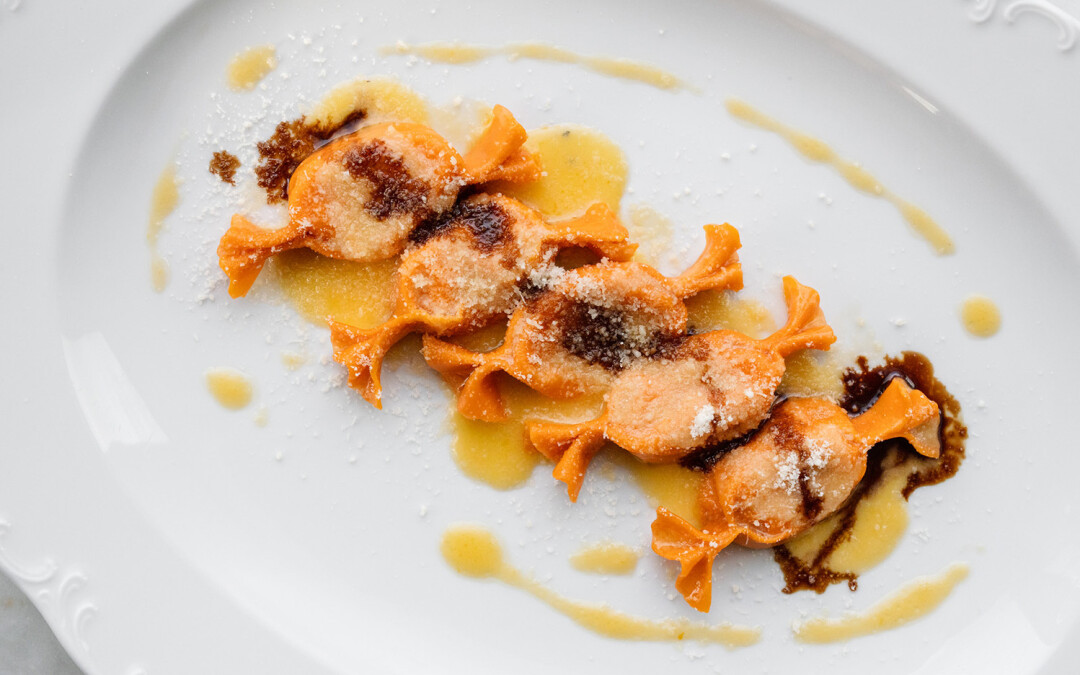 Говорим «Probka» — представляем карамелле, и наоборот. Кажется, что кухня Арама появилась сразу с карамелле на столе. Круглый год в меню есть карамелле верди зеленого цвета с начинкой из рикотты и шпината, а сезонные карамелле с тыквой — главный must-have сезона осень-зима.