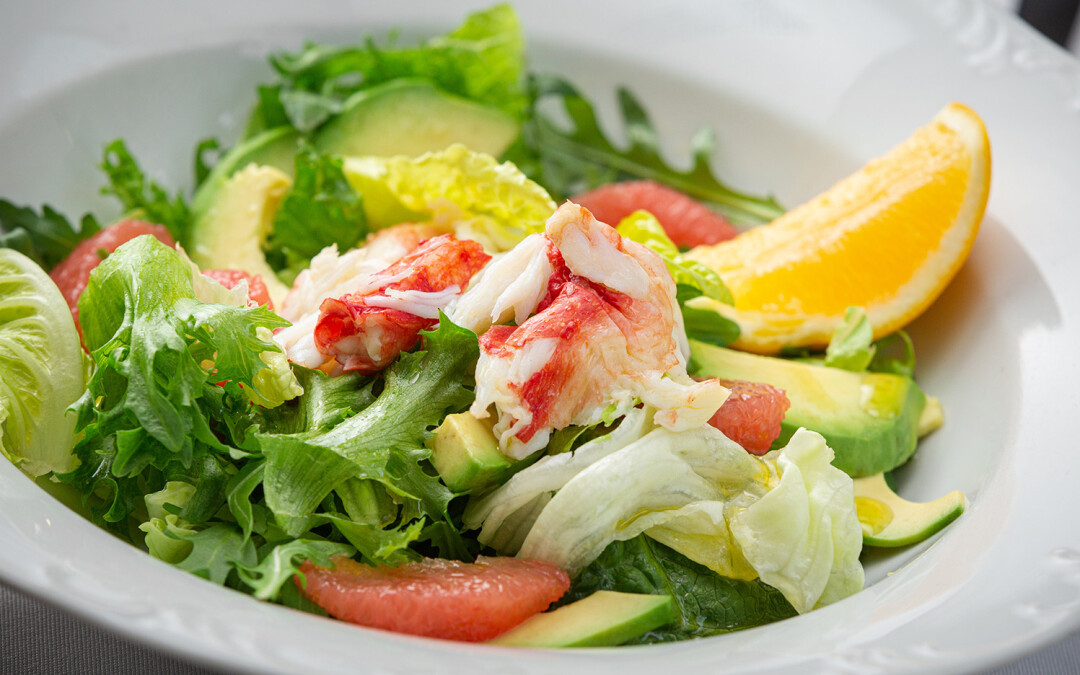 Салат с камчатским крабом, авокадо и грейпфрутом