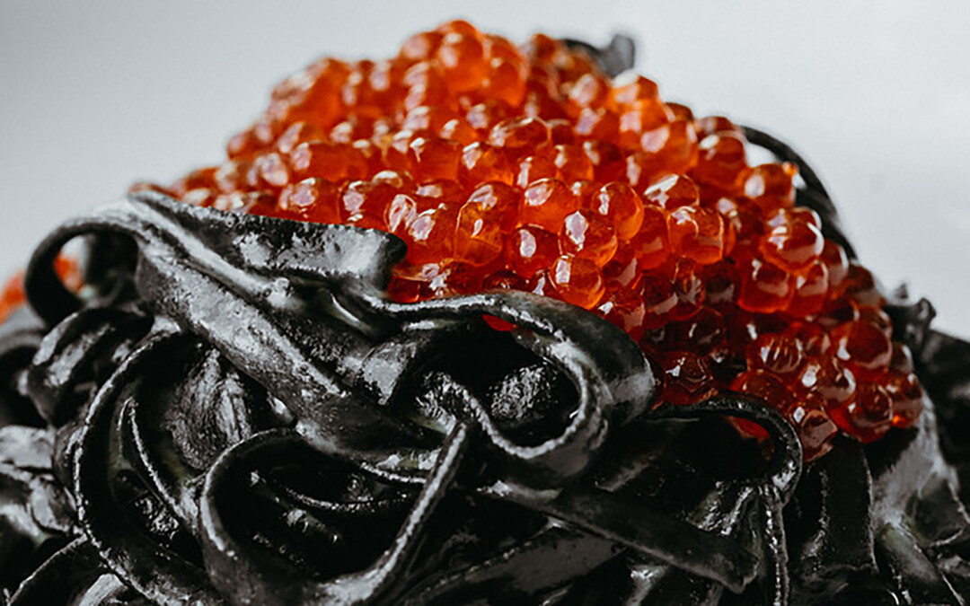 Тальолини с чернилами каракатицы и красной икрой