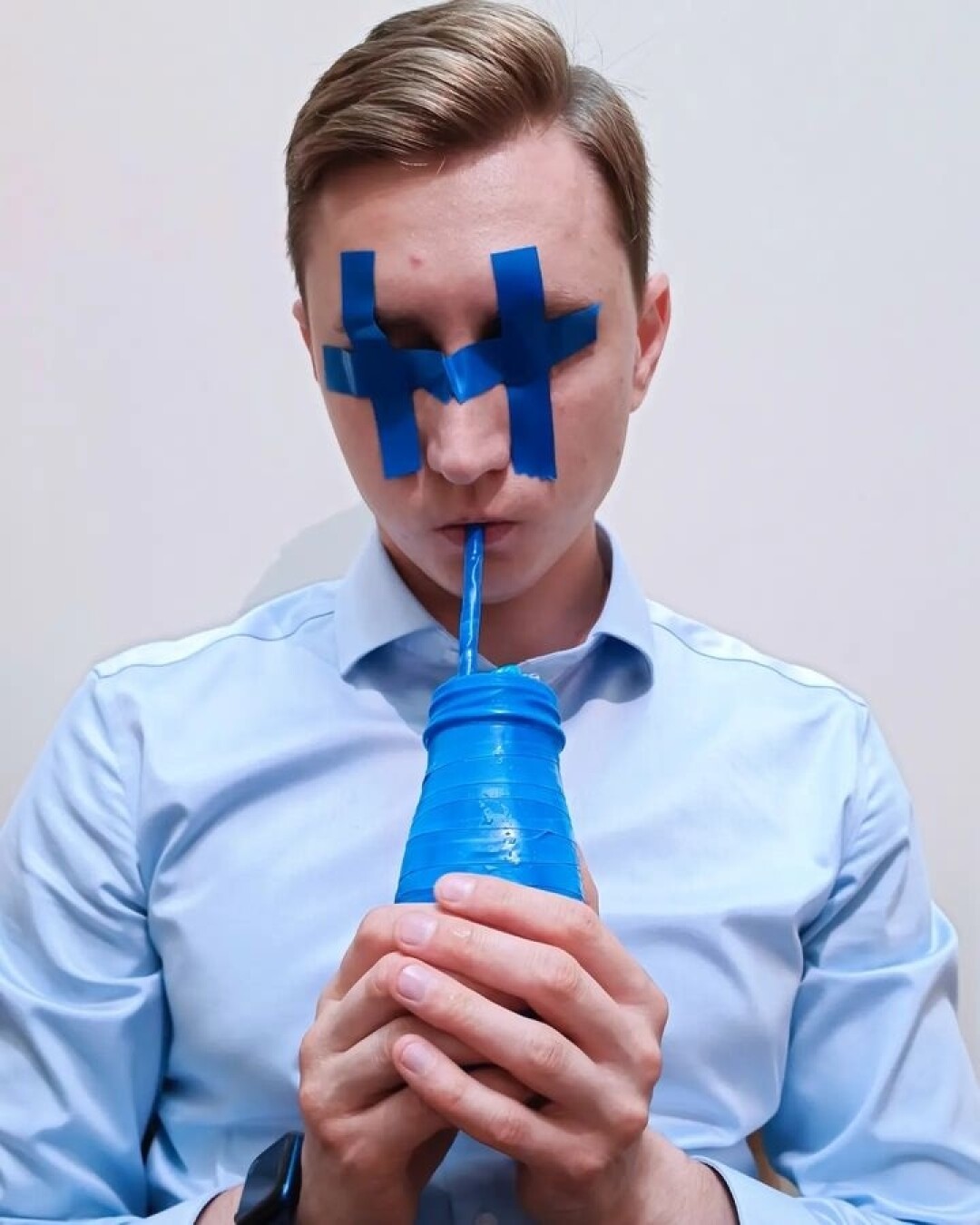 3. Образ, создающий вкус. Как передать то, что мы пробуем на вкус — синее? Зрение не может полностью помочь в его изучении мира, поэтому язык участвует в его более глубоком понимании. Так родилась идея с синим языком и закрытыми глазами»