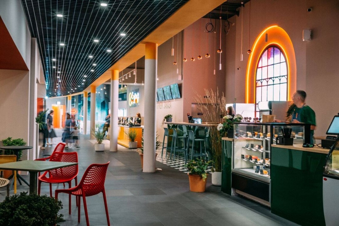 Здесь 5 направлений кухни — Европа, Мексика, Америка, Азия, Восток, бар с крафтовым пивом и настойками, кондитерская, цветочная лавка, книги и виниловые пластинки, бильярд, пинбол.