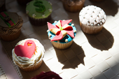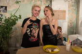 Актрис Екатерину и Варвару из Театра на Литейном уговорили участвовать друзья, давно нахваливающие их выпечку. Рецепты киша, тарталеток, печенья и конфет собраны по знакомым, по случаю, и лучшие и необычные остались в репертуаре Ресторанного дня — например, солоноватые маффины с брынзой и зеленью. Артистический задор девушки реализовали, продумав собственный стайлинг и расшив скатерть для стола: ее в течении дня не раз пытались приобрести.
