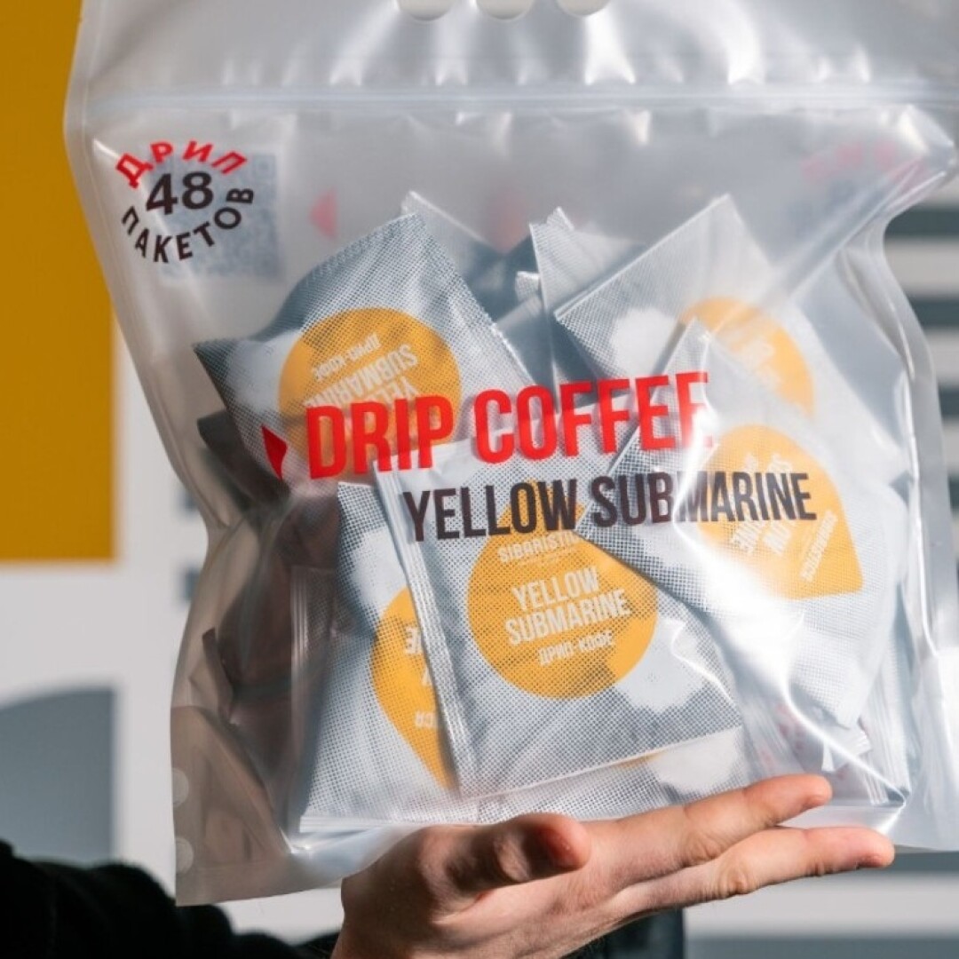 Кофейные обжарщики выпустили супербольшую упаковки дрипов — по 48 штук в каждом из наборов: три вида арабики (Эфиопия, Колумбия и Гватемала) или только их фирменная арабика Yellow Submarine из Бразилии с низкой кислотностью и тонами орехов, шоколада и желтых яблок. Пакет сделан из плотного полиэтилена, с ручкой и зиплок-застежкой.