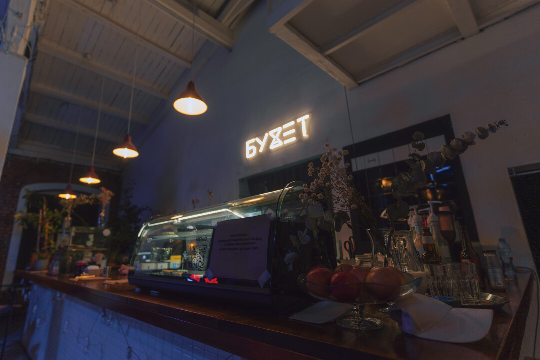 Консервативный выбор в меню, но зато какие стены! В 2014 здесь запускали проект «Гастробуфет», где каждую неделю меняли еду с участием известных проектов (например, «Цветочки» и «Сидрерия»). В том же году интерьер буфета был полностью обновлен: стены и барную стойку разрисовали театральные художники, а в 2023-м обзавелись новой мебелью и поставили книжный стеллаж у входа в буфет (попадаются интересные экземпляры, которые можно взять почитать!). К сожалению, сейчас остался только интерьер, а в меню — эклеры, тарталетки, бутерброды.