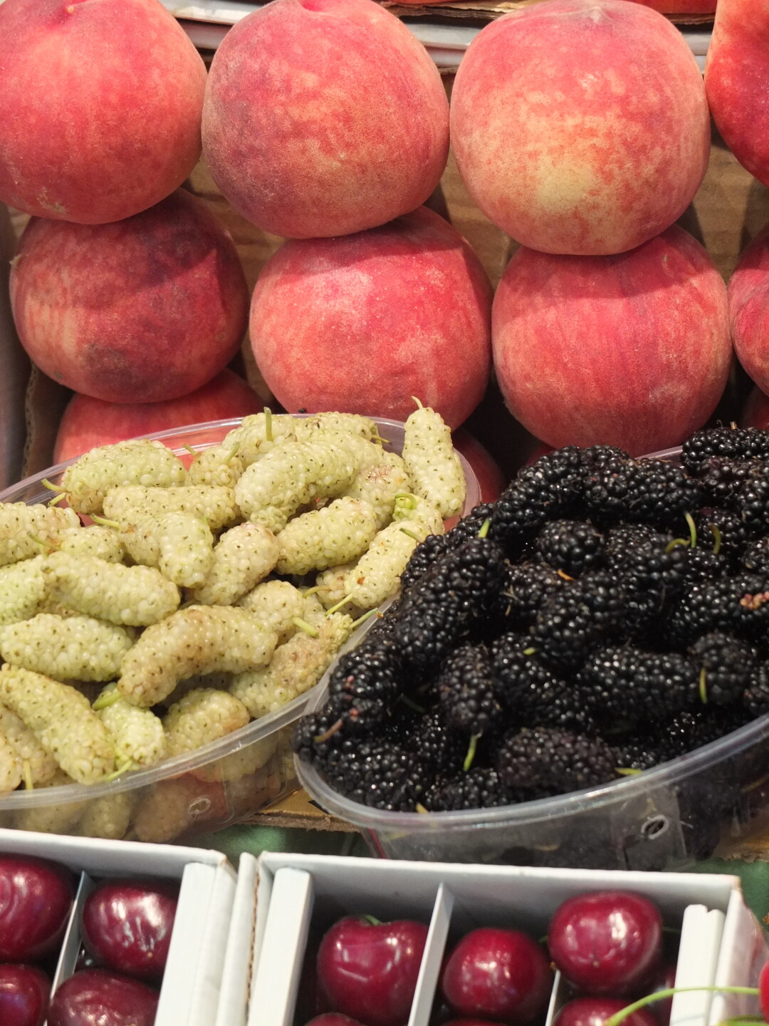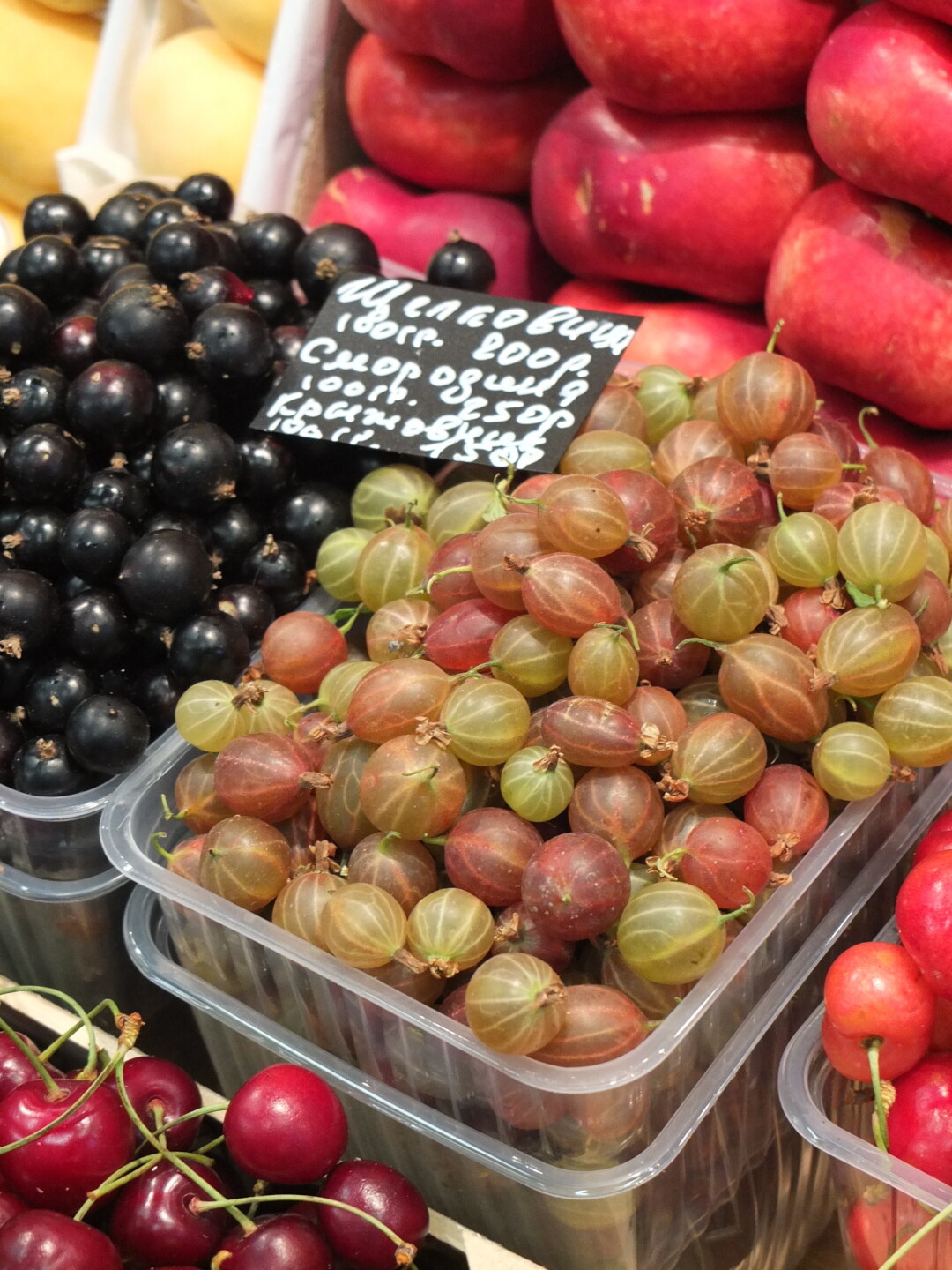 Ягоды: крыжовник, черная смородина, черешня и шелковица