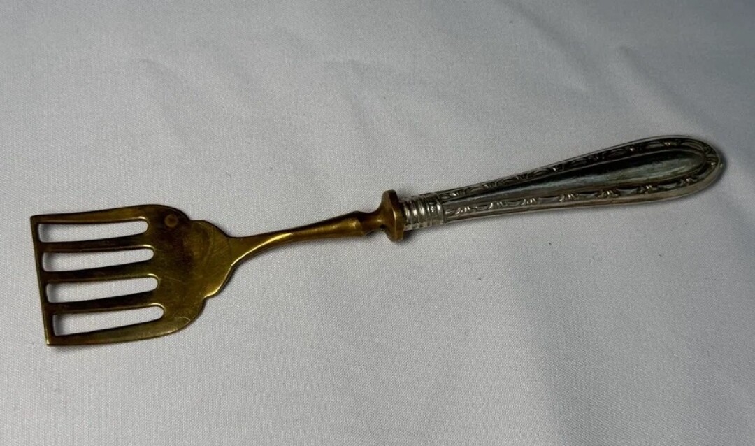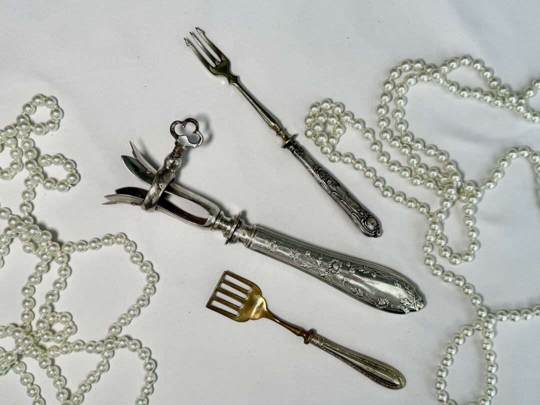 Еще один элемент на столах XIX века, особенно в домах, где любили маринованные овощи и закуски, это вилка для солений. Она выделялась длинной ручкой и зубцами с зазубринами, что позволяло легко доставать, например, соленые огурцы из глубоких банок и сервировочных мисок, не касаясь их руками. В эпоху, когда нормы гигиены становились всё более важными, такой прибор был настоящей находкой: он уменьшал риск загрязнения или порчи продукта.