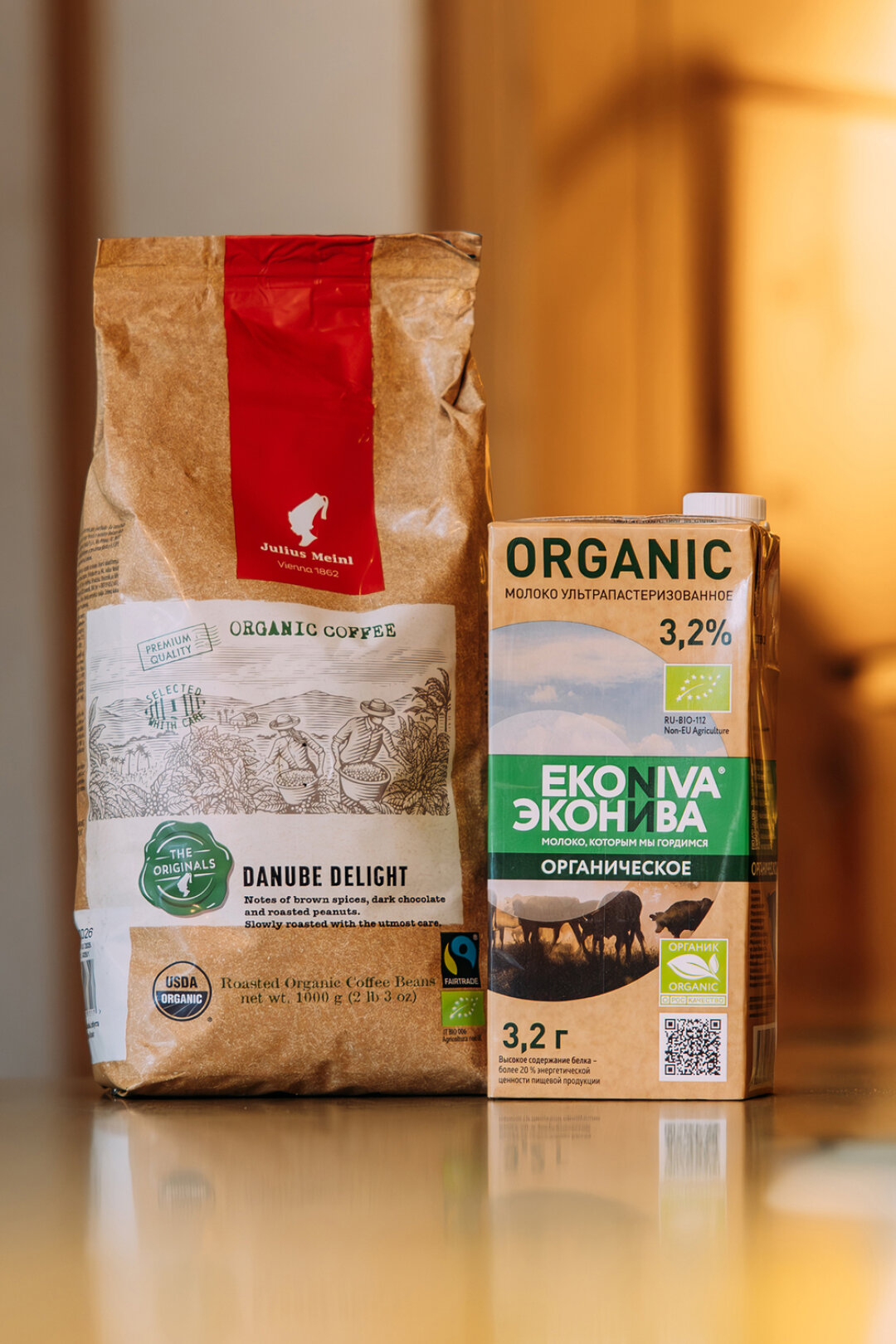Чтобы получить статус органического производства, надо не только соблюдать стандарты земледелия и содержания животных, но перевозить молоко в отдельных молоковозах и фасовать, исключая контакт с обычным молоком, — каждый этап проверяется российскими и европейскими инспекторами.Такой строгий контроль по принципу «от поля до прилавка» позволяет гарантировать стабильность качества и вкуса. Требования к производству кофе — не менее строгие: сбор плодов вручную, отдельная фасовка, экологичная упаковка, и это далеко не полный список. Все это гарантирует отсутствие примесей и химических добавок в конечном продукте.
