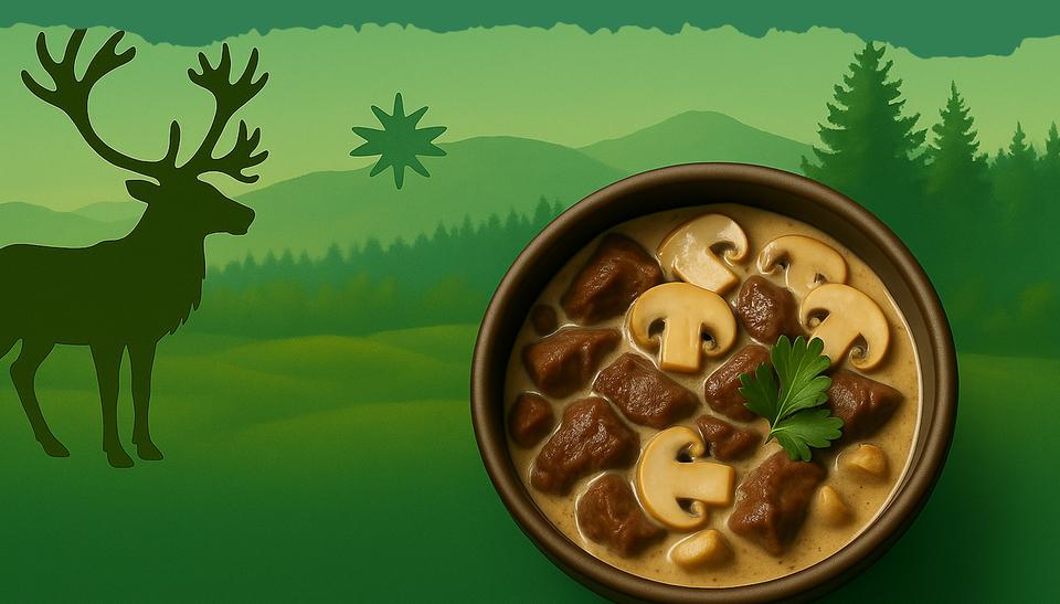 «Исторически для финно-угорского народа коми главными «супермаркетами» были тундра и тайга с их грибами, ягодами и дичью — а важнейшим промыслом было оленеводство. Оленину мы томим с корнеплодами, складываем в сэндвичи и начиняем ей пироги. А еще готовим из нее строганов с белыми грибами (уверенно держится в топе у гостей!) и подаем его с картофельным пюре и малосольными огурчиками».