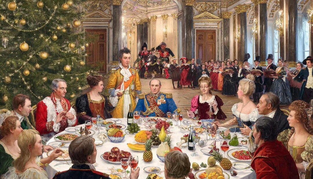 В Петербурге Новый год встречали с парадной изысканностью. В ресторане «Кюба», жемчужине Большой Морской, публика в вечерних платьях и мундирах поднимала бокалы под вальсы Штрауса. Меню писалось по-французски, на столах блистали устрицы, ананасы и «вино кометы», так называли шампанское урожая 1811 года, отмеченного редкой кометой. Стол здесь был театром, а поведение за ним частью роли. Этикет был паролем в общество, где каждый жест значил больше, чем слова.