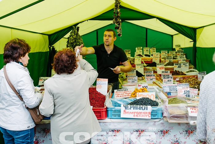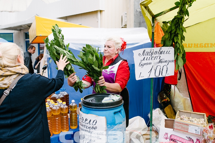 Поход на «Агрорусь-2013» оставил самые яркие впечатления. Тогда мы мужественно с фотографом обошли все ряды, нашли самых колоритных героев, порасспрашивали их о товарах. Вот, сверкая золотым зубом и осыпающимися перламутровыми тенями, дама нахваливает кубанские купаты, вот кавайная бабуля с гордостью демонстрирует нам крошечные патиссоны. Продукты этих и остальных персонажей мы тогда увековечили в посте о лучших продуктах России, и на следующий год собрались на выставку снова — и на поиски новый партии харизматичных фермеров, и убедиться, что действительно можно смело смотреть в лицо надвигающемуся санкционному дефициту. В какое же изумление пришла наша рабочая группа, когда мы встретили ровно тех же людей, причем на тех же местах. Дама, бабуля, привет! Так что от идеи острого репортажа пришлось отказаться и реализовать план «Б», состоящий в контрольных закупках того, что будет крайне необходимо в годину санкций.