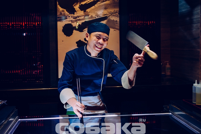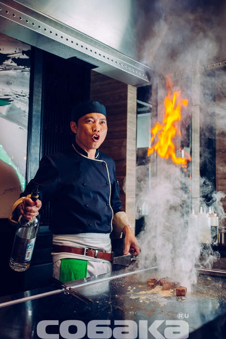 Тепаньяки — это и кулинарное шоу, и метод приготовления еды, и способ рассадки. Название произошло от слов «теппан» - лист железа и « яки» — гриль или жареный. Иными словами это традиция обжаривать на раскаленной поверхности продукты перед гостями. Обычно эта поверхность является продолжением стола. Незамысловатый по технологии процесс готовки мастера обычно оживляют настоящим перфомансом — они делают трюки, жонглируют и чуть ли не фокусы показывают. За работой мастера тепана больше всего похожи на харизматичных убийц-азиатов из фильмов про Джеймса Бонда. Летают ножи и тесаки, вспыхивает пламя, клубится дым, гремят банки с приправами, повар чуть ли не свистит в такт своим движениям — и вот у тебя на тарелке хрустящий брусок морковки, росток спаржи, ломтик тунца или министейк. За большим столом — на восемь-десять человек — как правило, оказываются незнакомые люди. Так что шоу — это еще и повод для разговоров, и просто молча и восхищенно понаблюдать можно.
