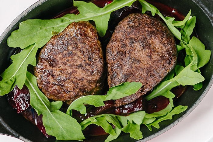 В мясном ресторане можно попробовать филе косули на гриле, вырезку оленя с брусничным соусом с овощами и котлетки из лося с печеной свеклой. Уменьшительно-ласкательная форма «котлетки» не должна вводить в заблуждение — порция куда более, чем монструозная.