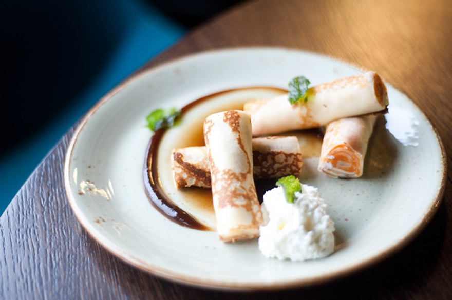 У Арама Мнацаканова явно не ровно дышат к Масленице: каждый ресторан группы подготовился к праздничной неделе по-своему. В Probka на Добролюбова — все по классике: блины с красной икрой или с мандариновым вареньем, а также хит из детства — блины с кремом Nutella. В панорамной «Рыбе» блины готовят с начинкой из рикотты и шпината или из бананов и шоколадного соуса. В кантине Jerome шеф-повар Алмаз Искаков на Масленицу готовит блины во французском стиле: со шпинатом, яйцом пашот и брынзой, с рагу из утки и вешенками или с яблоком и ванильным мороженым.