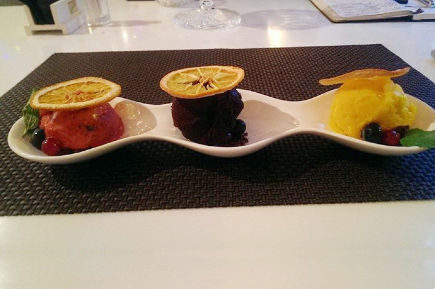 Ресторан Graf-in — рекордсмен не только по необычности вкусов мороженого и сорбетов, но и по их количеству. Есть, например, такие — арахис, облепиха, мандарин, клубника-мохито и базилик. Классики при этом тоже в достатке — карамель, фисташки, крем-брюле, шоколад, ваниль, манго, малина, лимон и лесные ягоды.