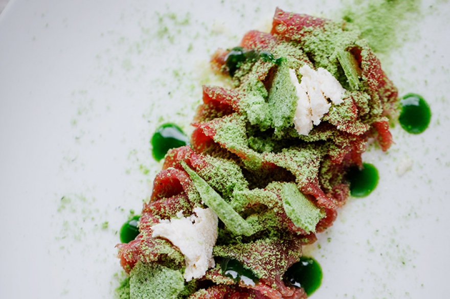 Шеф-повар ресторана «Гастрономика» Антон Исаков не может позволить себе банальность и подавать просто шарик мороженого: кокосовый сорбет с авокадо он готовит прямо при госте. На мраморной, очень холодной доске — такая техника антигриль — режется кусочками авокадо, их заливают кокосовым пюре, сбрызгивают лаймовым соком и доводят до кремообразной текстуры.