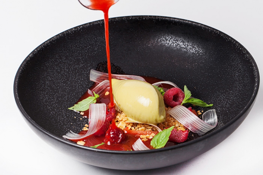 Малиновый суп с сорбетом из базилика