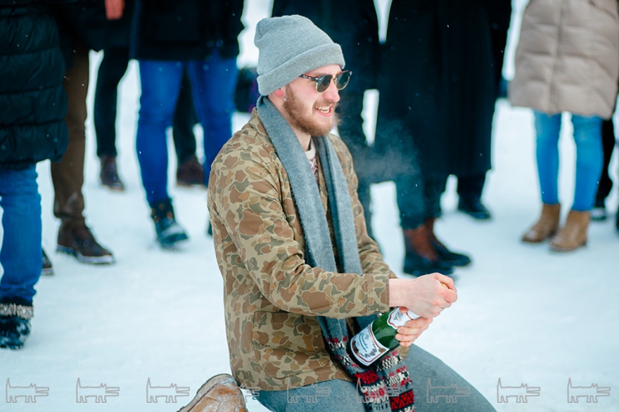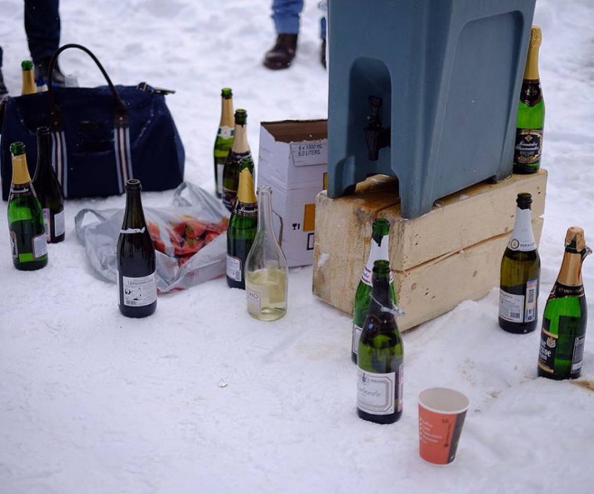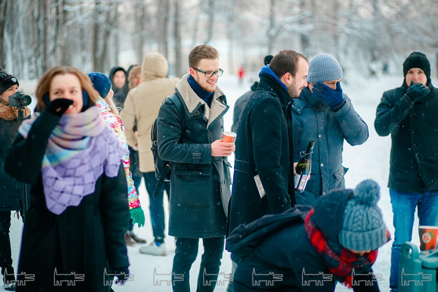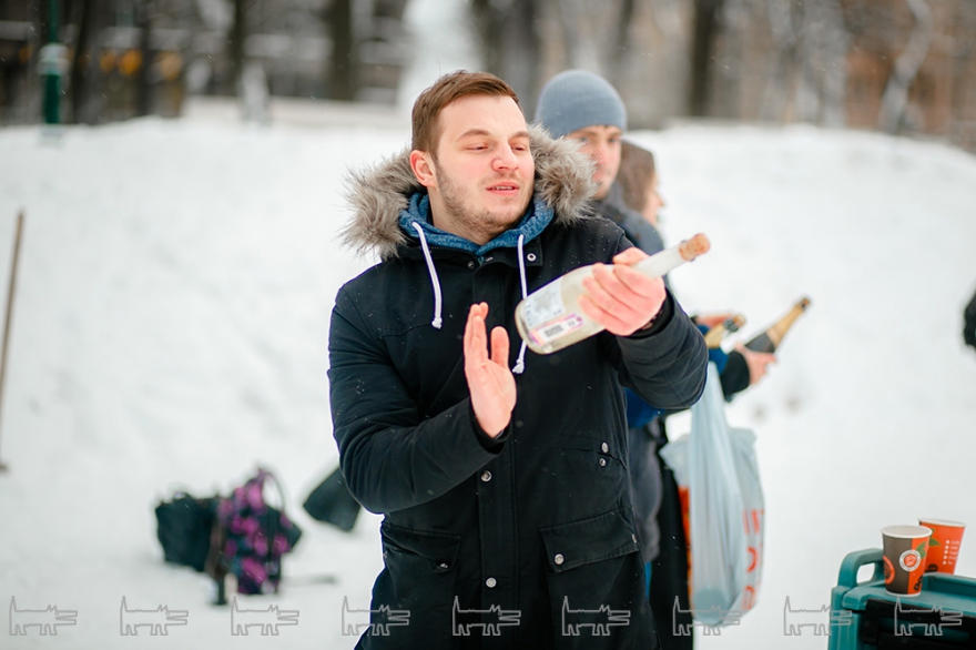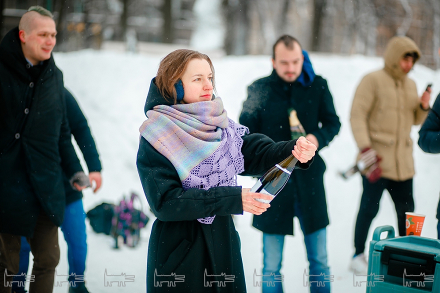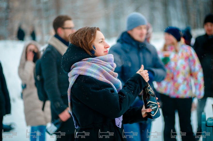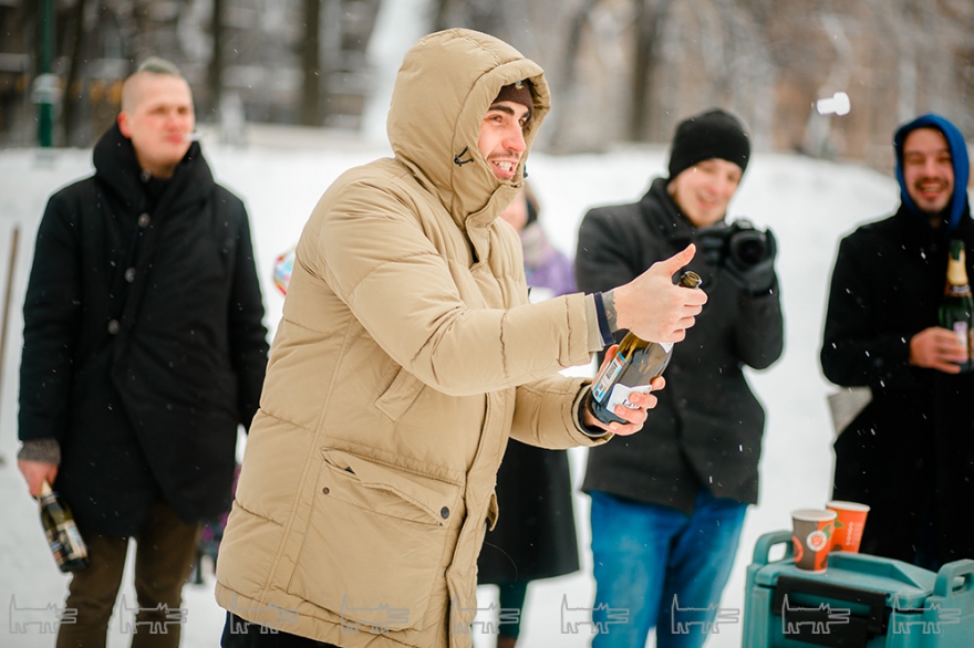 Этот чемпионат в очередной раз доказал нам, что деревянная пробка всегда лучше пластмассовой — эти вообще не хотели летать. Стрелять в такую погоду холодным шампанским оказалось непростой задачей, поэтому по ходу соревнования мы на собственном опыте проверили много разных вариантов. Всеми любимый способ — потрясти бутылку — в такую погоду не особо пригодился. Но постучать об дерево — сработало, правда, один раз бутылку просто разорвало на мелкие части от моего старания. И обязательно максимально долго удерживайте пробку, совершая при этом взбалтывающие движения. Да, и не забывайте о правилах безопасности! Отсутствие потолка не лишает вас шанса пробить что-нибудь даже на открытой местности».