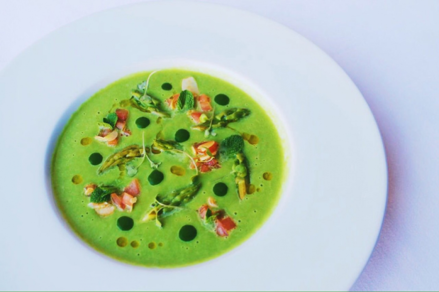 В итальянском ресторане Gusto сморли на новый уровень вывести на первый взгляд скучный жанр крем-супа: чтобы получить гипнотически нежный суп-пюре здесь обжаривают на оливковом масле спаржу, картофель и лук, смешивают их с овощным бульоном, пробивают блендером и перед подачей сервируют перьями молодой спаржи, томатами конкассе, лепестками миндаля и мяты.