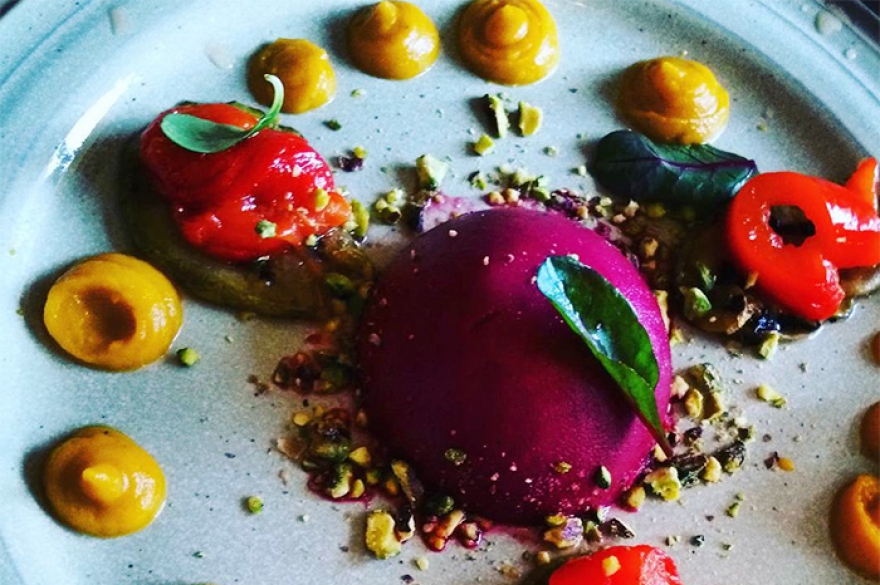 В ресторане Du Nord придумали постный инстаграм-хит — космический пейзаж из сфер подкопченной свеклы, крема из тыквы, маринованного перца и мандариновой пудры. Его можно сопровождать кус-кусом с молодыми овощами, песто и грунтом из орехов и зернового хлеба или тыквенным крем-супом с трюфельным маслом и кусочками жаренной чиабатты.