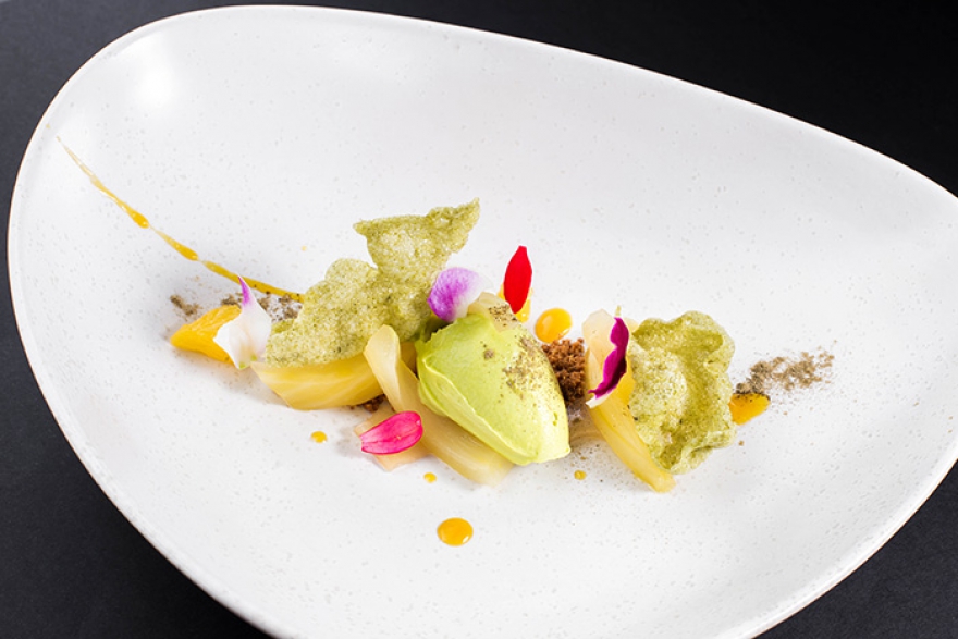 В вегетарианском сете звездного шеф-повара Адриана Кетгласа для ресторане Grand Cru хочется посоветовать вегетарианскую классику — то есть гуакомоле: «Фишкой этого блюда является то, что мы подаем гуакамоле на чипсах, которые изготавливаем из сухой морской капусты, водорослей нори и риса. Само гуакамоле мы готовим по более-менее классическому рецепту, то есть используем для этого спелое авокадо, перец чили, сок лимона и лайма, свежую мяту и соль. Но мы немного модернизировали его по технологии и делаем гуакамоле как сорбет. Перед отдачей дополняем вкус мармеладом из спелых томатов, украшаем слайсами свежего редиса и микро зеленью».