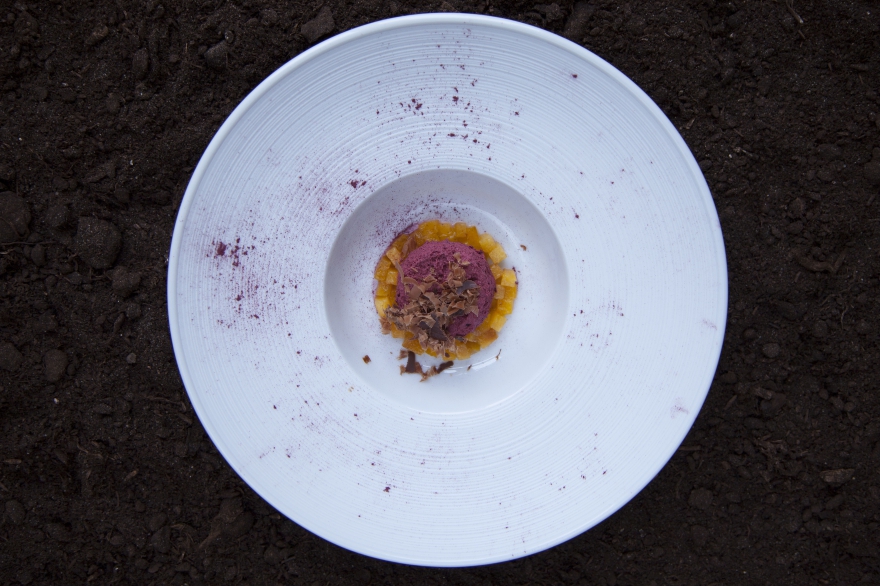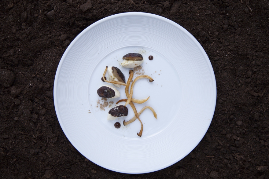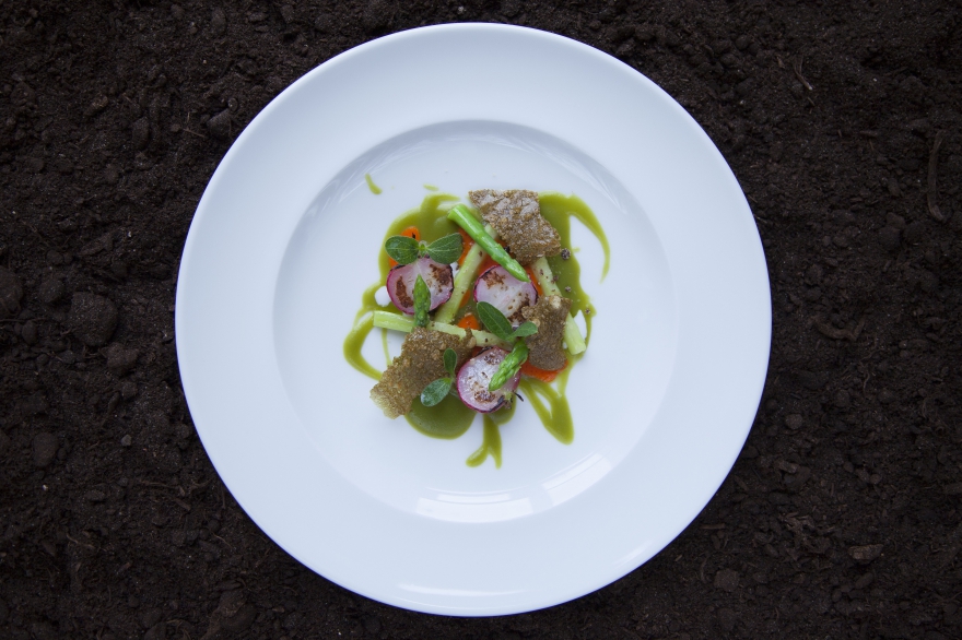 О блюдах: в сет входят шесть блюд. Холодные и горячие закуски — луковица с кремом из солода, бобы эдамаме со шпинатом и гелем из лимона и шпината, запеченный редис со спаржей и чипсами из кинзы. Основные блюда — грибы шиитаки и еринги с кремом из кешью и пудрой папоротника и копченая капуста конфи с черемшой и соусом из щавеля и трюфеля. Десерт — черноплодная рябина с шоколадом и желтой сливой.