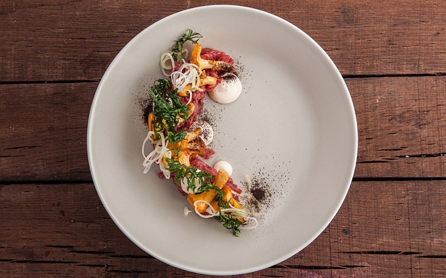 На сезон меню пополнил тартар из говядины с лисичками: к мраморному мясу и обжаренным на оливковом масле лисичкам с петрушкой и чесноком подают соус из гонгорзолы и пряную крошку из бородинского хлеба с трюфельным ароматом. Грибы для будущего блюда бренд-шеф ресторана Илья Бурнасов собирает сам.